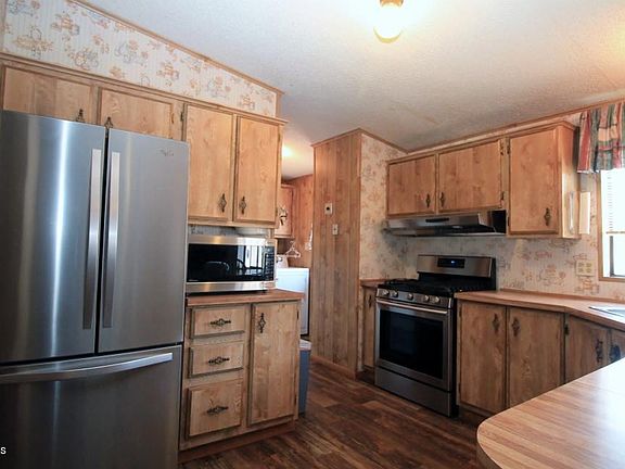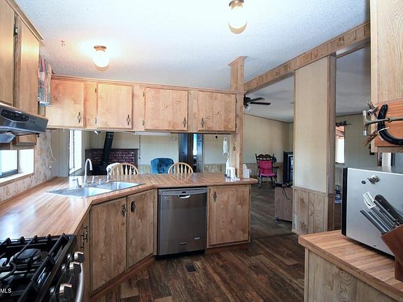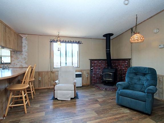 Well maintained home and outbuildings with many extras. Quiet location on a level parcel. Beautiful views of the mountains. 3 car insulated garage w/woodstove & 220 electric.4 stall pole barn plus 4 more sheds. The home has new Congoleum vinyl flooring, updated stainless steel appliances and a metal roof. Natural gas heat and a wood burning stove make for a cozy winter home. Fenced back yard