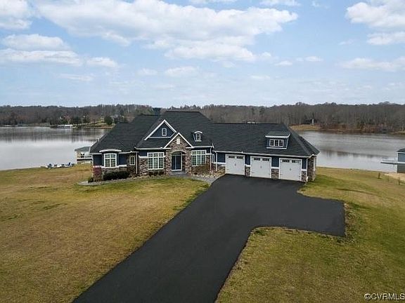 WOULD YOU LIKE TO PURCHASE THE PROPERTY AND INSTANTLY HAVE $200,000 OF INSTANT EQUITY. APPRAISAL JUST COMPLETED IN MARCH 2024 FOR $2,400,000. Your waterfront dream home awaits you. Set upon the beautiful shores of Lake Anna, Virginia on the public side of the lake. This custom built retreat is nestled on 9.38 acres and has over 480+ feet of private shoreline, creating the ultimate lake oasis. This gorgeous retreat will bring your family together for gatherings for many years to come. Over 5,000+ square feet on two open levels, this paradise offers seamless indoor/outdoor lakeside living, with 5 bedrooms, 4.5 baths, an office, three stone wood burning fireplaces, a curved screened in back deck overlooking the water. Step inside into a sunny open floor plan and gorgeous water views of Lake Anna's public side. Gourmet kitchen supplies two islands, stainless appliances, granite counters and is open to the morning room and spacious family room. Oversized primary bedroom suite is located on the main level as well, with a walk-in closet, tile shower and stand alone tub. Walkout basement features a family room, rec room, 4 bedrooms, 3 full baths and a storage room. A few steps away at the water, you’ll enjoy warm summer days down at your very own sandy beach and boathouse with two slips both with electric boat lifts, storage area, covered area, and a swim/sun deck. Gather around the fire pit and roast s'mores after a day on the lake. There is also a detached garage with an apartment on the property for rental income or guests! The garage apartment has its own septic tank and has 3 bedrooms, 1 full bath, a living room and kitchen. The lift and wood stove in garage can convey. NO HOA and Short Term Rentals are Permitted! Furniture can also convey with purchase. Great location, less than 2 hours from D.C and close to local dining, groceries and more.