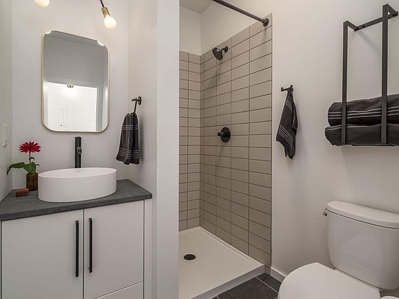Beautiful, new and modern. These efficient townhomes were designed and built by the owners, who also manage the property personally. We seek tenants who want a thoughtfully designed rental and will take care of it as their home. We recognize the important relationship between one's space and ones wellness and we hope you do too. This unit has a small yard and patio, (fenced) and a personal outside storage locker for bikes or items. Each unit is uniquely different from the other but this unit contains a modern kitchen with amenities like garbage disposal, dishwasher, quartz countertops, tile backsplash. Gas stove, gas fireplace upstairs, gas insta hot water heater. Vaulted ceilings upstairs with atrium overlooking the kitchen. There are real hardwood floors throughout and fully tiled bathrooms with designer fixtures. Quality black windows with casement style operation and window screens. Mini split unit (AC and heat) in each bedroom and on main floor, each individually operable. High efficiency washer and dryer in each unit. Dimmers in bedrooms, 9' ceilings. Each unit has large windows with ample light and cellular window shades for privacy. The rest of the building's occupants are in their second year lease or more because the building is such a treat to call home. They've testified that the additional insulation between walls makes each unit very private and "you wouldn't know" there is a shared wall. The unit for rent has its own entrance and private patio. The unit is the gable pitched roof facing Burnside, two stories tall. There is one bedroom on each floor, and each bedroom has its own bathroom. Please do not disturb current tenant. If you want to view the property, please respond to the ad and we will set up a time to view. Serious applicants that spoken with the owner will be scheduled to view the unit inside. Possible virtual walk through if necessary. Owner pays garbage. Resident pays fixed electrical bill to landlord, resident pays water, gas and internet bill. Small dogs allowed with pet reference and interview. Pet fee of $25/month.