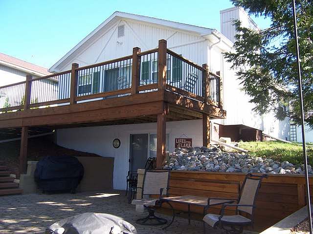 Stunning updated ranch, spacious & ideal for a year around home or the perfect "Up North" Get-Away! The large elevated lot lends to an amazing View! Terraced towards the lake, 2 decks, patio and shoreline storage building! The 2+ car detached garage makes for great storage.Note: The 2 sleeping areas in the Walkout Lower Level, do not have egress windows.