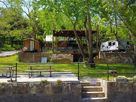 This is an investor's DREAM! Situated next door to Lone Star Float House, live music and food are just a step away. Concrete slabs are on the lower level making tent camping (short-term rental) a breeze. RVs can be placed alongside the pavilion for potential rental income. There is a 1500 gallon septic holding tank on-site. Water is supplied by a private well for $400/annually. 220 plugs conveniently placed at three locations on property. A gravel driveway allows access to lower level and sets of concrete stairs lead to the water's edge. NOTE: 7462 River Rd. shares the pavilion and is also for sale.