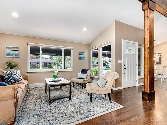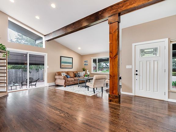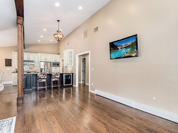 Gorgeous fully remodeled ranch home on 1/3 acre in Columbine Knolls. Open floorpan with vaulted ceilings & wood beams! Home backs to park with easy access through lockable gate in the back fence. 3 oversized bedrooms, 3 bathroom plus 2 bonus rooms for either office or workout room. Beautiful wood floors throughout in walnut stain. Newer carpet, kitchen remodel w/two tone MasterBrand Diamond cabinets w/soft close door/drawers, glass fronts, spice rack, pot drawers, cookie sheet cabinet & utensil trays Leather texture granite & high-end stainless appliances, beverage center & more. 2 living spaces or downstairs could be used as an open concept guest room/studio. Huge laundry room! New roof & exterior paint! New insulated garage door w/smart, whisper drive quiet opener, front door, storm door & RING smart video doorbell New electrical panel, updated kitchen electrical & three prong outlets thru-out, newer windows, stamped concrete patio, huge yard!