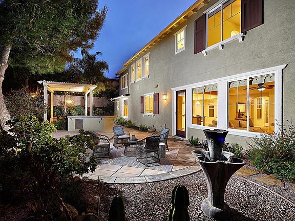 Located in highly desirable La Costa Oaks South, this inviting home offers a flowing floorplan with an abundance of natural light and no neighbors behind. The downstairs bedroom with ensuite is ideal for guests and family. For those looking for a home office, the front room offers a pleasant space to think and work. The designer kitchen features an expansive Brazilian granite island with custom cabinetry, high-end appliances and walk-in pantry with plenty of storage. The spacious primary bedroom retreat boasts a custom ensuite bathroom with soaking tub, separate designer shower and large walk-in closet. Entertainers and wine connoisseurs will marvel at the wine cellar featuring custom redwood racks for storage of 1,200+ bottles. Chefs and gardeners alike will appreciate the raised vegetable garden beds, fig and citrus trees. Sunrun solar with electric car charging capability. Whole house alarm system and Ring doorbell. Drought tolerant landscaping front and back yards. Community clubhouse, pool, workout facility and more. Short stroll to La Costa Town Square, Stagecoach Park and trail systems. Top-rated schools!