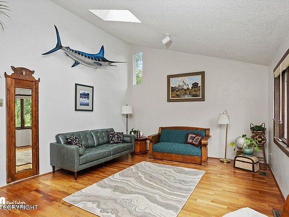 Stop by and have a look at this cozy and charming little 3 bedroom home. Nice private yard, 2 family rooms, and with the two skylights it brings so much natural light. Located in a desirable neighborhood and a great commute location if you are going to Palmer, Wasilla, or Anchorage. And the detached shop is ready for your vision, It will make a great garage, workshop, storage area, or a place tostore all your AK toys.