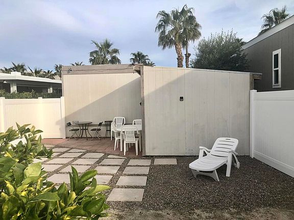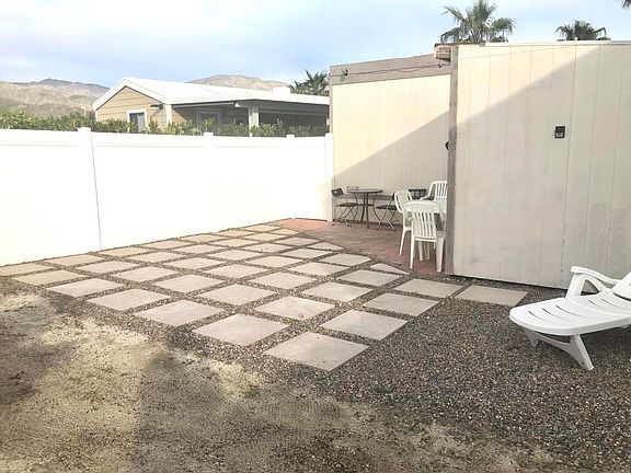 Priced to sell fast! On leased land, $613 month- terrific amenities.Charming 1989 Laytn park model in ALL AGED community of Sky Valley Resort.Open concept kitchen, dining and living area. There is a room addition with minifridge and cabinets can be used as a second bedroom or California room. Large shed with laminate flooring. Attached deck with mature bougainvilla.Large back yard with 3 citrus fruit trees and large pavers with pea gravel design.Sky Valley Resort has 13 mineral pools, pickleball, walking trails, concerts, food delivery and more!