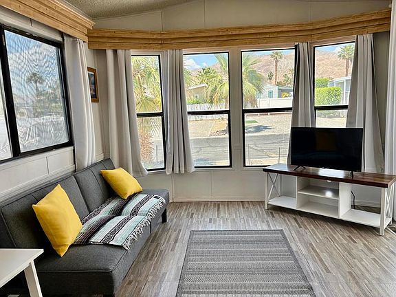 Welcome to Family Friendly Sky Valley Resort! This property is a 2 Bedroom, 1 Bathroom Park Model and is being offered Furnished. It's situated on a large rectangular lot with a huge Backyard area with Fantastic Views of the Desert & Mountains! Enjoy the Desert Evenings out on your 2 separate Patios.Both have newer Patio Furniture & Cushions and the Front Patio has new Turf. There's a New Tuff Shed, Kamado Joe Smoker and 2 Weber Grills (1 gas & 1 Charcoal). Inside the home is new Laminate Flooring throughout. The Living Room has a Futon Couch and there's a cute Dining Area with a built in Hutch. The Kitchen has lots of cabinets for storage. The California Room can be used as a 2nd Bedroom or Den/Office.Sky Valley Resort Offers many Great amenities including 13 Hot Mineral Pools & Spa's, Fitness Center, Sauna, Tennis Courts, Pickle Ball Courts, Cafe, Chapel, & a Doggie Park. As a resident you can Golf at the Sister Park, Caliente Springs, which is only a couple miles down the road. This Resort is a Gated, Family Park. The Property has Space Rent and is not on Leased or Fee land. The Space Rent is $920. per month. Short Term Rentals are Allowed with Restrictions.Come out and Explore the Desert Lifestyle! Palm Springs is just a short 15-20 minute drive. .This Property is DMV Registered and doesn't have Property Taxes. You now can get Financing on Park Models.