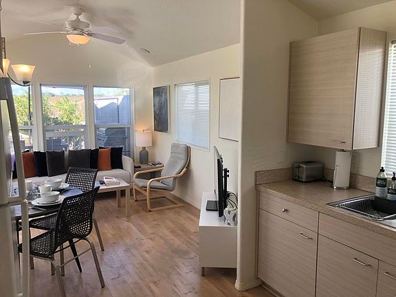 Panoramic VIEWS of San Jacinto mountain and sunset on private deck with privacy fence and landscaping. 2006 park model currently in the rental program and comes with Jan and Feb already booked! Fully furnished and stocked - turn key unit!Sky Valley Resort is an active ALL AGE family park featuring:-13 sparkling hot spring mineral pools;-pickleball, tennis, horseshoes, shuffleboard, walking trails, cardio fitness center and weight gym-library, activities, cafe, chef delivering dinners and more!