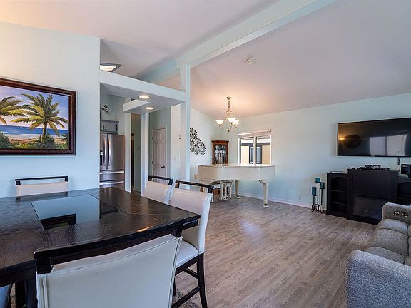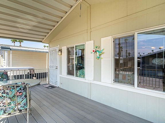 Play-Stay-Invest - You have choices! Your BEST choice is to see such a quaint 2-bed, 2-bath charming pride of ownership. Manufactured home in the Sky Valley Resort gated community. This gem is ready for you to add your personal touch. The beautiful oversized front deck is a great place to entertain friends and family or enjoy a quiet cup of coffee. This two-bed, and two full-bath home has an open concept with a kitchen, living, and dining area. The open kitchen has a newer refrigerator and plenty of counter space. The laundry room has a newer washer and dryer and room for extra storage. The large primary bedroom has an en-suite bathroom with a custom double vanity and a large shower. The guest bathroom has a newer pedestal sink and shower/tub. The secondary bedroom can easily be used for an office, craft room, or den. This home is located at the end of a very quiet cull de sac, very close to the clubhouse, pools, and tennis & pickleball courts. The resident chef will deliver amazing home-cooked meals to your door. Sky Valley offers so many fun activities and friendly people. Join in the fun with a sing-along around the fire pit on Friday nights, games on Saturdays, and church on Sundays. Sky Valley Resort is known for its healing waters and pickleball tournaments. Close to amazing hiking trails, Palm Springs Intl. airport, Acrisure Arena, and all the music festivals and BNP Paribas. Sky Valley allows short with permits