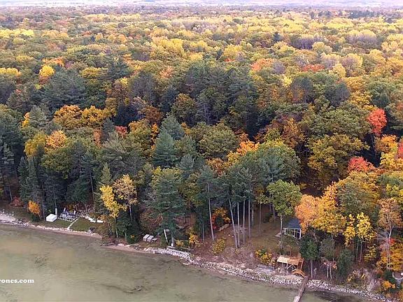 Rarely available location on quiet and private end of road Argonaut Trail!! This historical victorian cottage sits on two woodsy acres with separate year round contemporary guest cottage, all overlooking Burt Lake's sought out South End!! This lovely 2 story 3 bedroom cottage was built in 1904 as a summer home and hunting lodge and has been in the same family for 70 years. Many of the original details remain. Victorian natural wood kitchen cabinets still with original hinges and latches. Original woodwork and hardware throughout, including wood box beams on ceilings of dining and living room. Plus original wood floors lie hidden under the carpet. Enjoy a fire in the stepped brick fireplace while looking at the lake from the bay window. Sip your morning coffee while sitting on the screened in wrap around porch surrounded by the original turned wood Victorian posts all while viewing the full length of Burt Lake. The additional 3 bedroom guest cottage with attached 2 car garage and lake views has a Swedish feel with light wood cabinets and woodwork, enameled gas fireplace and Corian counters in the kitchen. Take the gentle stairs built into a beautifully landscaped terrace down to the beach where you can catch the sunrise and/or sunset. Pull your boat up to the 50 foot maintenance-free dock, and swim with the South End's famous sandy bottom under your feet!!!!