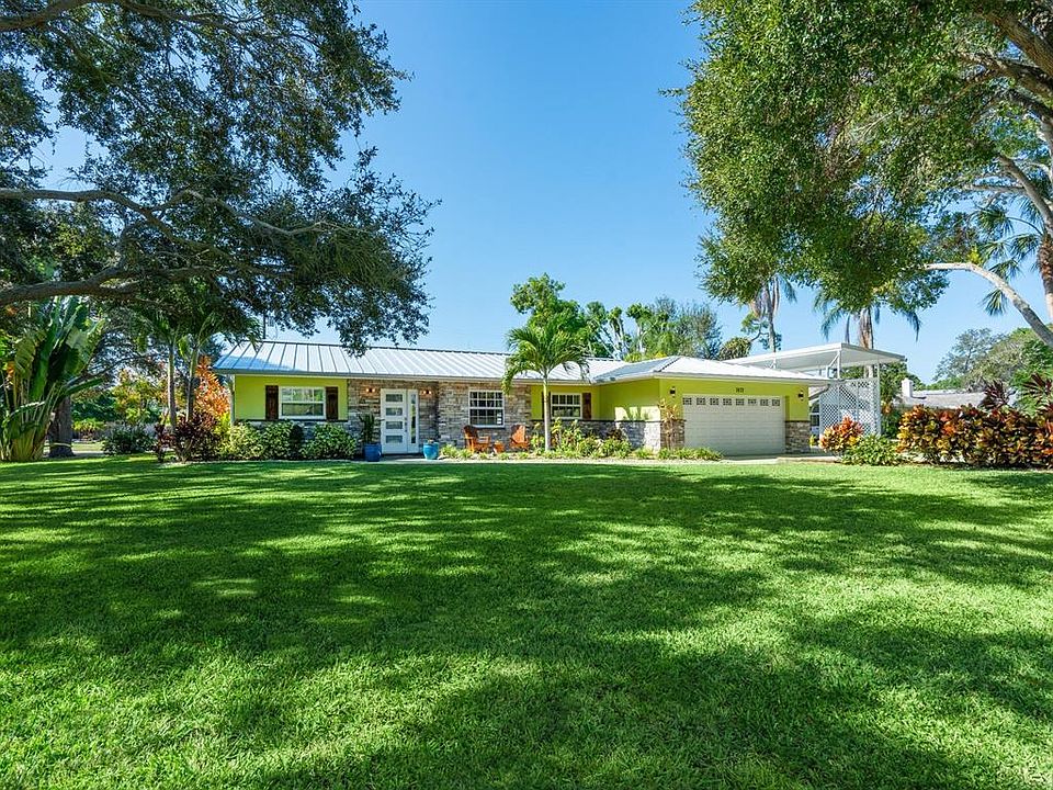 Welcome home to Paradise! This fabulous 3 bedroom 2 bath pool home is located in the renowned Whitfield Estates, and just a block away from Sarasota Bay. A magnificent Oak Tree frames the oversized lot, encompassed by lush landscaping. Double French doors provide access from the living room and two of the bedrooms to the enclosed, covered lanai and fenced backyard/pool area where you can enjoy dinners and family get togethers. As you enter the home, you will appreciate the attention to detail and the quality of finishes, along with the open floor plan. The kitchen will please the most discerning chef with its large island of wrap around cabinets, quartz counter tops & wood cabinetry. This home offers a true split-plan with two bedrooms and a bath on one side and the master on the other, perfect for guests. Recent updates to the home include the electrical panel upgraded to 200 amps in 4/21, metal roof installed in 3/20 along with all new gutters and a renovated master bathroom , guest bathroom, living room completed in 2017. There is also an underground 250 gallon propane tank, and a water purification system throughout the home . The property is fenced affording privacy. Inside the oversized two car garage you will find the laundry area. Another unique feature is the 32' deep by 11’ high, covered carport that can house an RV or boat as long as it is completely contained beneath. (grandfathered in) Nearby marinas will allow you to enjoy boating as well. There is public access to Sarasota Bay for launching kayaks and paddle boards or just enjoying the magnificent sunsets. Whitfield Estates is a deed restricted community, and you may join the HOA for $35 annually, which will afford you a culinary membership to the historic Sara Bay Country Club, designed by Donald Ross, and one of the oldest golf courses in Florida. Conveniently located near downtown Sarasota, Ringling Museum of Art, and Sarasota Bradenton International Airport. World famous beaches, Benderson Rowing Park, UTC Mall are all within miles 6-8 miles away.