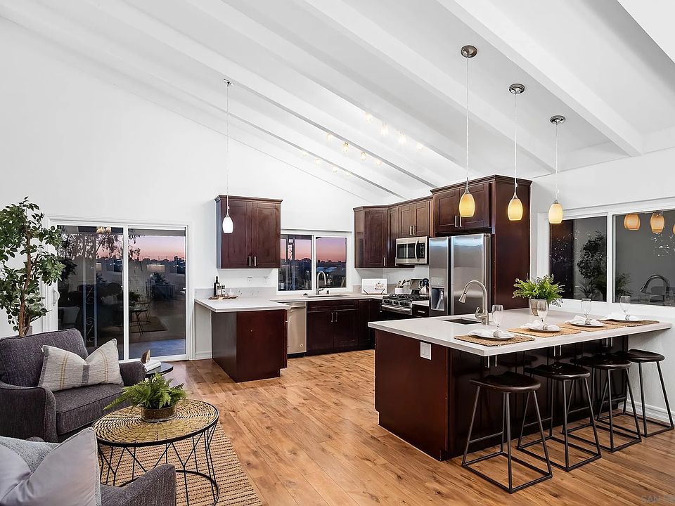 This home has the WOW factor! Sitting at the end of cul-de-sac it’s open and bright floor plan, vaulted ceilings, wood like flooring, large living room, cozy fireplace and spacious kitchen with stainless steel appliances, quartz counter, soft close espresso cabinets, breakfast bar, opens to the spacious backyard perfect for indoor-outdoor living relax & enjoy! Huge master, en suite, walk in closet, sliding door out to the patio. Close to shopping malls, golf, SDSU, Mission Valley, downtown SD and so much more.