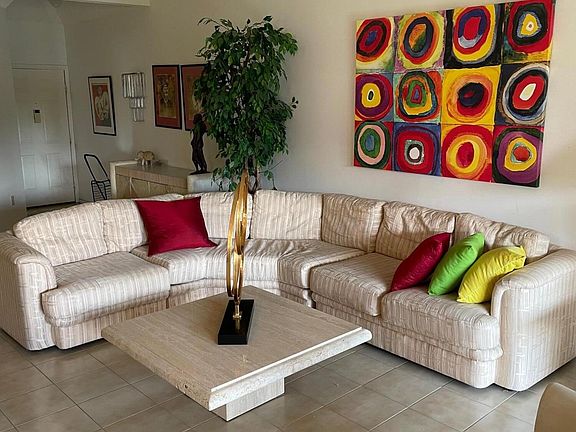 Great golf views in this 2/2 condo. Light, bright and the largest 2 bedroom floor plan in La Paz. Eat-in kitchen has granite counter tops and updated appliances, plus 2 windows making it a warm and inviting space for having your morning coffee. Floor plan features a split bedroom lay out, large living and dining areas, walk in closet in master and 2 patios with beautiful views. Carpet in both bedrooms recently replaced. A/C within a year old. Washing machine replaced. La paz has 2 pools, 2 tennis courts and a community room for all residents. Most of the furniture can stay if buyer wants at no additional charge or owner will remove.