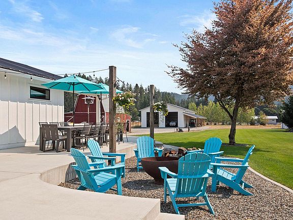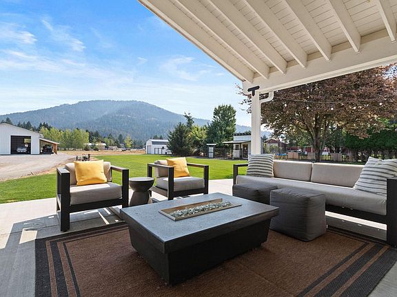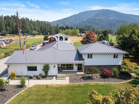 INCREDIBLE INDOOR-OUTDOOR LIVING ON 2.59 FLAT ACRES + HUGE 40x80 SHOP + BARN + LAP SWIM SPA — Expanded and upgraded in 2000, this house is loaded with luxury finishes and amenities throughout: spacious main level Living + Kitchen + Dining + Master Suite + Office; Game Room + 1 Bedroom down, Den + 2 Bedrooms up; huge outdoor Porch + Patio areas, with adjacent fire pit and irrigated lawn; yard amenities galore including: timber pavilion with lap swim spa, huge shop, historic barn, fenced farm/chicken area, ample off-street parking, and open acreage in the rear of the parcel; upgrades include standing seam metal roofing, new windows, new doors, new siding, new flooring throughout, huge addition with Kitchen, Living, Master Suite, Office, Porch & Patio; all in the amazing Dalton Gardens neighborhood just minutes from Hayden Lake and Canfield Mountain!