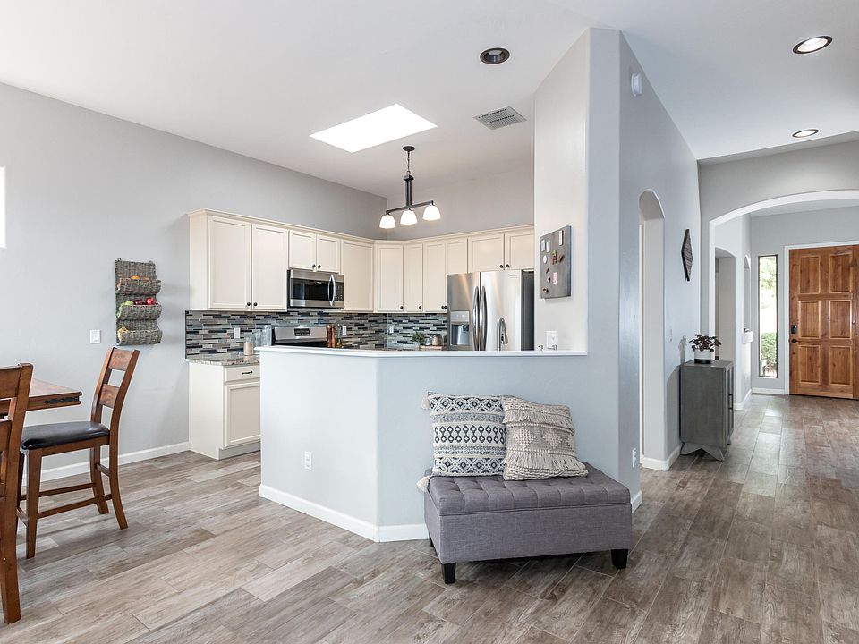 This beautiful home offers tile and laminate floors throughout. No carpet. All walls/ceilings in neutral colors. Granite counter tops, ceramic back splashes. Stainless steel newer appliances. Window covers in all bedrooms and family room convey. Do you enjoy family movie nights on a LARGE screen? Living room is wired with an in-ceiling fiber optic HDMI cable, a professionally mounted 4K capable projector, and a custom framed 120'' light refracting screen specifically designed for day or night use. Ceiling is also wired for built in speakers in 4 locations. (Optional custom leather couch on a separate bill of sale). NOTE: The audio system and all speakers do NOT convey. Buyer can be provided with any information needed on what they would need to buy to make it work. Continues If buyer does not want the theater system, sellers will remove all items, and patch the ceiling/walls. Backyard is designed for gardens with the raised planting beds. Flagstone floor for BBQ and patio set. Enjoy the mountains and big open sky from the backyard. This home offers you a place to relax and call your own.