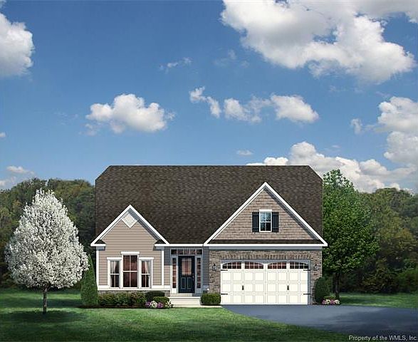 Brentwood Ranch Plan offering a professionally designed decorator's package including 3 Bedrooms, 2 Bathrroms, Owner's Suite with Roman Shower and Walk-In Closet, Gourmet Kitchen with Stainless Steel Appliances to include Refrigerator, Island and Pantry, Formal Dining Room, 2 Car Side-Load Garage and Partial Brick Front.