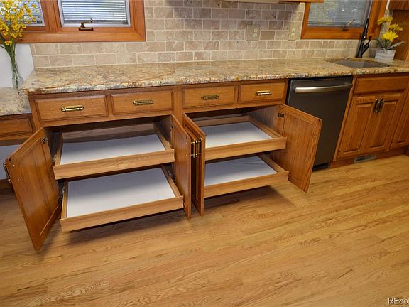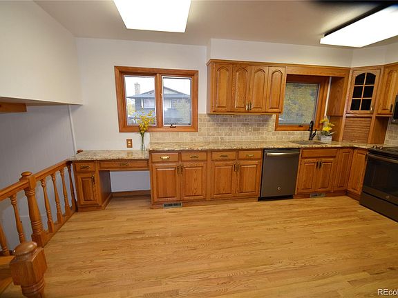 This Hutchinson home is ready for it\'s next family with plenty of upgrades located on a quiet street with a south facing driveway. The Gourmet Kitchen features slab granite countertops, travertine tile backsplash, stainless steel appliances, real hardwood flooring in the entry, kitchen and family room. Large Family Room, accented by wood beams, plus a gas fireplace enhanced by a brick surround, hearth and built-in shelving. Newly renovated master bath is gorgeous! Travertine tile shower, maple cabinets & tile flooring. Walk-in closet in the master bedroom. Formal living and dining area for those holiday gatherings. Pella windows installed thru-out with built-in shades, newer Lennox furnace & A/C, newer driveway, newer exterior siding on north & side of home on 2nd level. Ideal location just one block to Bible Park and the Highline Canal. Easy access to I-25 & I-225, shopping, restaurants and light rail.