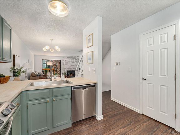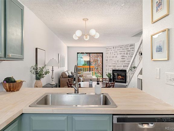 Beautifully updated townhome-style condo in Windsong Condos! Step inside and discover a lovely kitchen with stainless steel appliances, freshly painted cabinets adorned with new hardware, and sleek butcher countertops. The kitchen seamlessly flows into the formal dining space, ideal for entertaining guests or enjoying family meals. Adjacent is the inviting living room, featuring an eye-catching fireplace with stunning stone accents. Experience indoor-outdoor living at its finest with walkout access to the refinished deck, perfect for sipping morning coffee or hosting summer BBQs amidst the shared green space. Upstairs, retreat to two spacious bedrooms, each offering ample storage with two closets. One bedroom grants direct access to the shared full bathroom, recently updated with a quartz countertop and new shower. Downstairs, the finished basement presents versatility with family room and non-conforming bedroom, complete with an adjoining half bathroom, ideal for guests or a home office. Completing this move-in-ready home is one reserved parking spot. Enjoy regular cookouts and get-togethers with neighbors or delight in the nearby parks and trails, with several parks within walking distance and the Cherry Creek Trail and Highline Canal just a short 0.5-mile away. This home offers easy access to highways, major roads, and downtown, as well as an array of coffee shops and amenities just moments away!