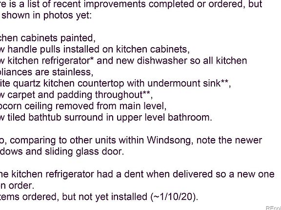 Imagine white kitchen cabinets, quartz counters, brand new carpet, new appliances, etc., etc. Large, 2-story + basement townhome-style home. Living room with fireplace. 2-bedrooms with newer carpet + large bathroom with 2-sinks on upper level. Bedroom 3 and bathroom with shower in basement. Wonderful deck overlooking grassy area. Newer windows and sliding glass door (2018). Laundry closet with included washer & dryer on upper level. A/C + attic fan. Lots of storage space in closets, in basement storage room, and in storage closet. Newer water heater (2018). Newer roof, gutters, exterior paint (2018). ***Similar sized units sold at $297,000 and $325,000 this year.*** This is a good one!
