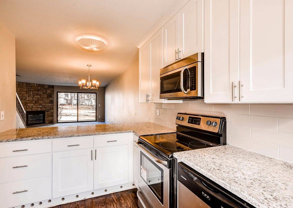 This 2-bedroom, 3-bathroom townhome has been completely remodeled! Fresh carpet has been laid down throughout the house along with a new coat of paint in every room. The kitchen boasts completely new stainless steel appliances, granite countertops, and beautiful, white cabinetry. Also in the kitchen, there is a deep sink and a modern tile backsplash. The wood floors in the entryway and kitchen have been refinished to a handsome walnut color, and the newly finished basement is the perfect space for a great room or movie room. In the living room, there is a nice wood-burning fireplace and entry to the back patio, which opens out to a large open space. Located in a quiet neighborhood just east of Virginia Village. Cherry Creek Shopping Center as well as major stores along Colorado Blvd are just a quick drive away. Entry to the Cherry Creek Trail is also a short walk down the street, and there are multiple nearby parks.
