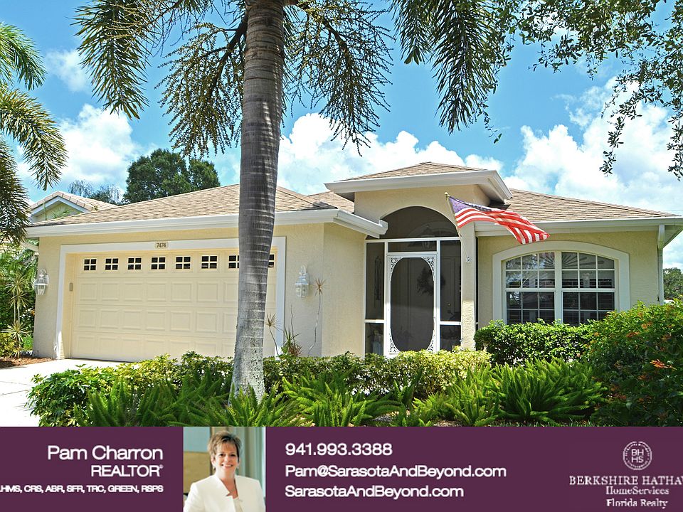 ACCEPTING SHOWINGS FOR BACKUP OFFERS. Located in a quiet enclave of 54 homes, this Pinehurst estate home offers 3 bedrooms, 2 baths, has been nicely updated. Arrive to find pretty curb appeal with lush landscaping. Desirable high ceilings with a great room plan that includes space for a dining room table, a wonderful kitchen with breakfast nook, granite tops, breakfast bar, tiled backsplash, under mount sink, and abundant cabinetry. Easy care tile and wood flooring. The master suite is spacious with a walk-in closet with closet system, and stand up shower with dual sinks. Light and bright throughout. Additionally, there are 2 bedrooms that share a bath which has a great spa tub/shower combo. Lots of added features like a butler pantry and built-in desk or craft table. Enjoy your morning coffee on the tiled lanai or get your exercise by walking to the heated pool. Well managed community with a low HOA fee of only $210 per month which covers yard maintenance, exterior pest control, basic cable, the community center and pool. Set between SR70 and University Parkway, there is easy access to grocery, shopping, and other amenities such as the UTC shopping mall, airport and interstate. A must see in its price point.