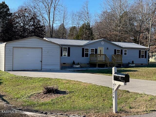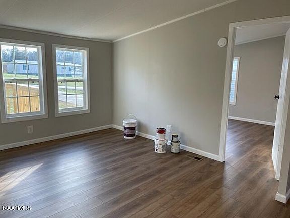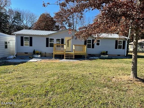 Large family room, new windows ceiling fan. Two guest rooms and full bath w/new vanity and fixtures. Two outbuildings for extra storage or one car garage. Cover porch on the back. Washer and dryer convey. Very Level lot. The outbuildings are ''as is'', 20x20 metal garage and 10x20 Utility Shed. Close to the town of Loudon and I-75. Large lot, creek at the back of the property, no restrictions. On a permanent foundation.