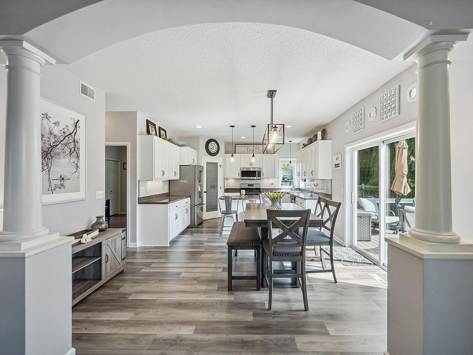 Welcome to this beautifully updated home featuring an inviting open concept floor plan that seamlessly blends modern living with comfort. As you approach, you're greeted by a charming covered front porch, perfect for enjoying morning coffee or evening sunsets.