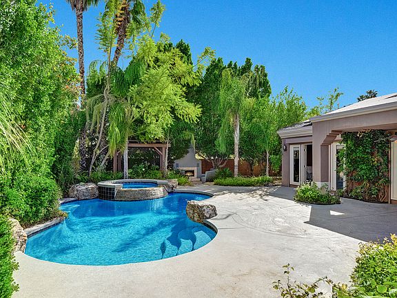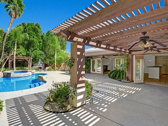 Desirable home walking distance to the famous El Paseo and outside the gates of the Vintage Country Club! This private corner lot features an open floor plan with an upgraded kitchen that opens to the large great-room. High ceilings with stunning cove lighting creates an ambiance like no other! The master suite features a spa-like bathroom with dual sink vanities, and separate tub and shower.The outdoor living space is second to none - with stunning pool and spa, outdoor cozy fireplace with seating and lush landscaping, this home is an entertainers paradise!