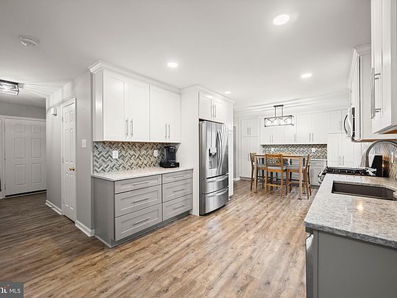 Welcome to 7475 Brandenburg Circle, an impressive 3,000 sq ft colonial in sought-after Sykesville, ready to welcome you home! This beautifully updated 4-bedroom, 3 1/2-bath gem offers spacious living areas designed for comfort and style. The large family room, perfect for entertaining, features a striking cathedral ceiling, creating a bright and open atmosphere. The heart of the home is the updated kitchen, featuring quartz countertops, a modern tile backsplash, an eat-in area, and extra cabinet space extending into the adjoining dining room. Luxury vinyl floors flow throughout, adding a sleek touch and durability. The primary suite includes a spa-like, upgraded bathroom with a stunning open-plan shower ‘wet room’ design. The finished lower level offers even more living options with a kitchenette, a full bathroom, and ample storage space. Step outside to relax on the screened-in porch or unwind on the deck overlooking a peaceful backyard. With an oversized garage providing additional storage and many thoughtful updates throughout, this home has so much to offer. Don’t miss the chance to experience it in person—schedule your private tour today!