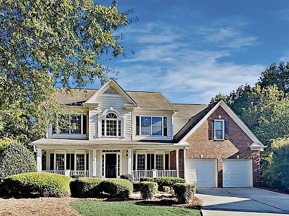 Large rocking chair front porch greets you into this grand home. Separate living/flex room on one side and separate dining room on opposite side. Stunning great room has a gas starter, marble surround fireplace with dramatic arched windows to the ceiling. And completely open to a Large kitchen with corian countertops, tons of rich wood cabinets, stainless steel appliances including gas range and built-in microwave, large eat-in area with bay window. bath finishes the main level. Upstairs primary suite is oversized with a deep trey ceiling, large walk-in closet, Spa-like bath has 2 large separate vanities in 2 separate areas, whirlpool tub and separate shower. Bedroom 2 has a private bath, bedrooms 3 & 4 share a bath. All bedrooms are spacious with ample closets. Laundry room finishes the 2nd floor. Unfinished terrace level has TONS of opportunities with plenty of daylight. Wonderfully located in a neighborhood complete with amenities such as two pools, three playgrounds, 12 tennis courts, and a gym. Situated near parks, playgrounds, restaurants and sought-after top-rated schools!