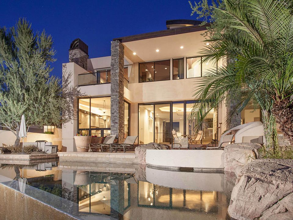 GAINEY RANCH DEAL OF THE CENTURY! The dramatic sunset views stretch across the fabulous Gainey Ranch Golf Course providing you with a soothing and desirable sense of accomplishment. This stunning Kitchell Custom contemporary offers nearly every possible amenity and comfort, from the expanded chef's kitchen, to the multiple entertaining venues including a large basement getaway with secluded honeymoon spa retreat, to the private master level with office, sauna, and exercise room. Three levels and an elevator offer you the room you've been looking for, the ease in which to enjoy it, and the elevation you need to fully appreciate the scenic Golf Course Lake views. The Gainey community provides 24 hour guarded entry and The Estates.