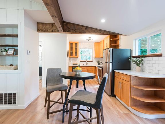 This lovely Felton home boasts a picturesque location overlooking the babbling Zayante Creek. The open plan layout creates a spacious and inviting atmosphere, with a vaulted ceiling in the living room and built-in shelving. The bedrooms both feature built-in closets for ample storage. The fully-stocked kitchen is beautifully appointed with quartz countertops, a tile backsplash, and plenty of cabinet space. The sunny dining space is perfect for enjoying meals with family - open the door to the spacious deck perfect for hosting and enjoying the serene creek. Central heat and AC! The roomy basement provides plenty of storage space and can be transformed into a workshop. Easy access to Felton and Graham Hill Road, providing convenient access to Scotts Valley. Head south on Hwy 9 into Santa Cruz for beaches, or enjoy Quail Hollow Ranch County Park nature preserve's 300 acres of gorgeous forest.