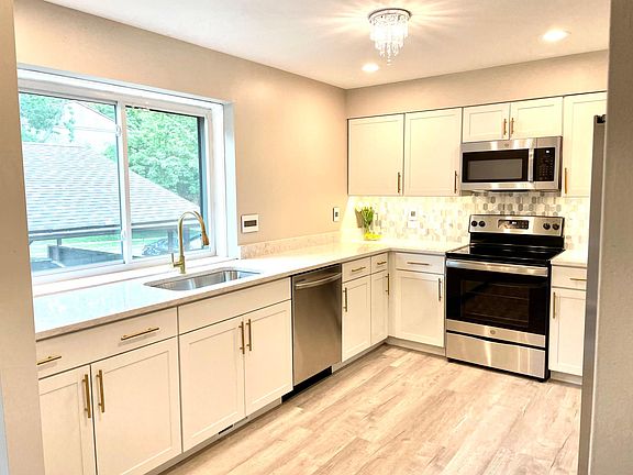 Renovated kitchenSpacious deckDeck and patioLarge windowsQuartz countersDining roomOversized master suite