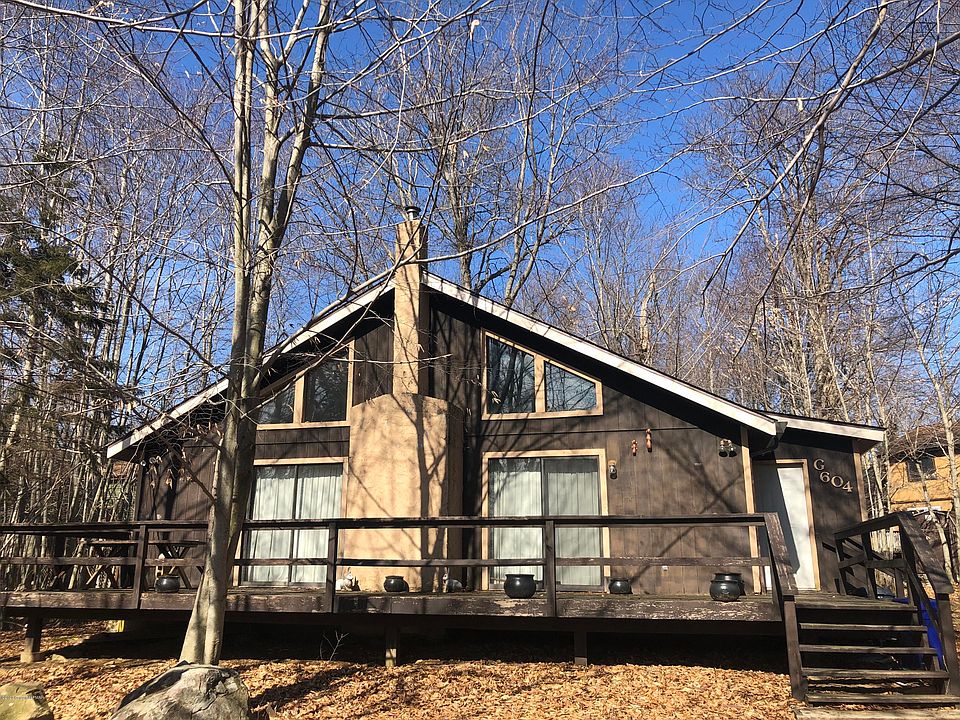 Great opportunity to own vacation home or investment property. First owner, never been on the market before.... 3 bedrooms, 1 bath and loft as extra space is ready for the new family. Newer roof and deck..... With little love that could be amazing home for all year round living . Located in Amenity filled community with lake, beach, pool, tennis, basketball, community center. Gated with 24/7 security. Short term rental permitted. Close to Kalahari Water-park, Mt. Airy Casino. Property being sold ''As is Where is''! Call today and make an appointment !