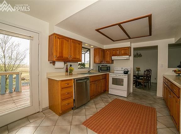 Incredible Home On Over 5 Acres w/ Full Pikes Peak And Front Range Views From The Front & Backs To Open Space That Is A 40,000 Acre Working Cattle Ranch*Every Window In This Home Has Amazing Views*3Stall Barn w/ Tack Room*Unbelievable 150K 50x100 Outbuilding w/ Concrete Floor (Plumbed For Radiant Heat),Utilities And 1200 SQF Lower Level*The House Features New Carpet, New Paint, Remodeled Bathrooms, All Appliances Included, And A 6x100 Wrap Around Deck*If You Are Looking For Space To Spread Out Close To The City-This Is It!