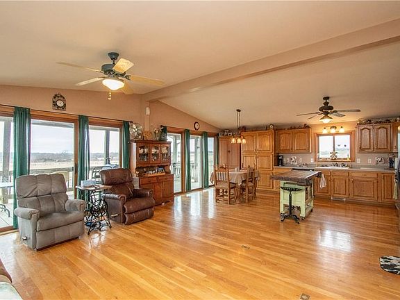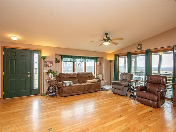 Situated in the rolling hills of southern Warren County is this wonderful ranch home on 20 acres with several outbuildings for you to call home. Open concept great room with vaulted ceiling, solid oak floors and tons of natural light. Large kitchen and dining with sliding doors lead to the amazing covered deck overlooking the pond. Master bedroom has a full bath and large walk-in closet. 2nd bedroom, bath and laundry complete the main floor. Lower level walk out has a great flex space, a 3rd bedroom with large walk-in closet and 3/4 Bath. 2x6 construction, newer roof and water heater. Extra-large 2 car attached garage with 9 ft doors. Huge, detached workshop/garage with 1/2 bath. Full RV hook ups with water, electric and sewer. Barn and paddock. Located in I-35 School District and just 1 mile from Heritage Hills Wildlife Area with over 1900 acres of DNR managed public hunting. Quick access to the Interstate & Des Moines. 13 Mo HWA Platinum Home Warranty included!