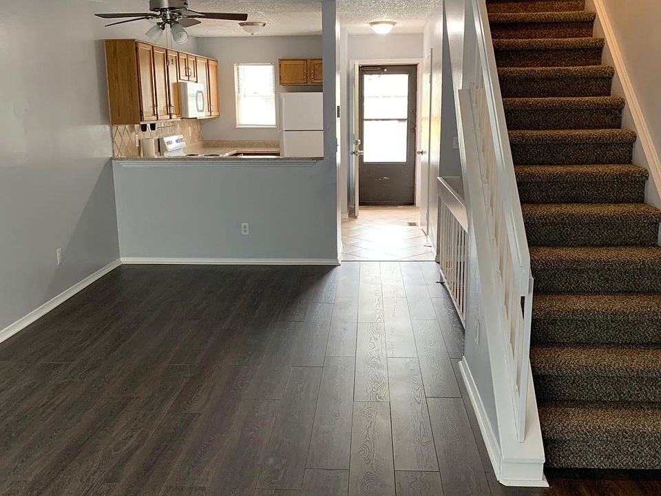Beautiful remodeled townhome. New paint on walls and ceilings, new appliances, new counters, huge living and dining room area, big finished basement room. Laundry room and storage as well, with washer/dryer included. 2 bedrooms on the upper floor with a big master bath with redone tub and shower. Nice closet space. Fun patio area. Minimum one year lease, willing to sign longer term. Water/trash/pool access included.