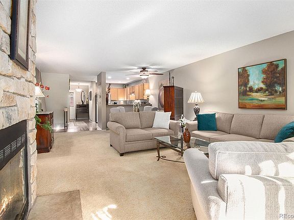 This beautiful townhome boasts large, roomy living & dining rooms and a spacious kitchen. There are 2 large bedrooms with vaulted ceilings and each with private, full bathrooms. The inviting main level has a living room with a wood burning fireplace & stone surround; an ample dining space; and an open kitchen with new (~6 mos.) stainless steel appliances, new sink, faucet, & countertop; as well as a convenient powder room. The main level opens up to a secluded patio overlooking a luscious, park-like green space with mature trees. The open basement offers numerous possibilities for finishing and/or storage. Other benefits include 2-parking spaces (a 1-car attached garage + a dedicated parking spot right by the front door), lots of closet & storage space, a whole house attic fan, newer furnace & A/C, new water heater, and a window seat! The Windsong community enjoys 2 swimming pools, tennis courts, and a clubhouse. Walking distance to the Highline Canal trail and Cherry Creek trail plus nearby shopping and restaurants. This is a good one. Welcome home!
