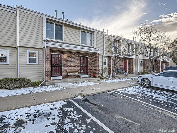 TONS of possibilities in this two bedroom condo! Wood floors in the main floor living room and dining area. The living room focal point is the large wood burning fireplace with beautiful stone surround, and the sliding door to the RARE private fenced and gated back patio. The kitchen has slab granite counters and all stainless appliances, including DW, Micro, Stove/Range/Oven, and Refrigerator. The two upstairs bedrooms have carpet and TWO spacious reach-in closets each. The upstairs full bathroom has double sinks, tile on the floor and the tub/shower surround. The finished basement has a 3/4 bath, family room with storage closet, and the laundry room has a side-by-side washer and dryer INCLUDED! **DON'T MISS FEATURES: Ideal location with easy access to DTC, downtown, Cherry Creek & more! Located in Cherry Creek School District! 2 reserved parking spaces transfer for this unit. PLUS abundant COMMUNITY AMENITIES including pool, spa/hot tub, clubhouse, tennis courts, snow removal, and trash **The potential is there in this great condo!