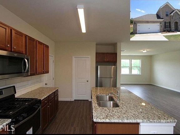 This rental will be gone before you know it! Located 15 minutes from the airport and 25 minutes away from downtown Atlanta, this 4 bedroom, 2.5 bath has a beautiful open floor plan on the first floor. Hardwood floors throughout the kitchen, dining and living room area. Hardwood steps lead to upstairs loft area and 3 additional carpeted bedrooms upstairs. The large main carpeted bedroom is located on the first floor with a luxurious bathroom and walk-in closet. Step outside to the back porch and imagine outdoor fun in a private gated backyard. The attached 2 car garage has enough space for cars and storage. House is already safe-proof through an ADT system and will be transitioned in renter's name. Small dogs are allowed with a $500 pet fee. All utilities is on the renter. Home comes with refrigerator, stove, microwave, dishwasher, washer and 65-inch mounted television! No Housing Choice Voucher Program accepted. 12 month lease with HOA bylaws presented at the time of signing agreement.