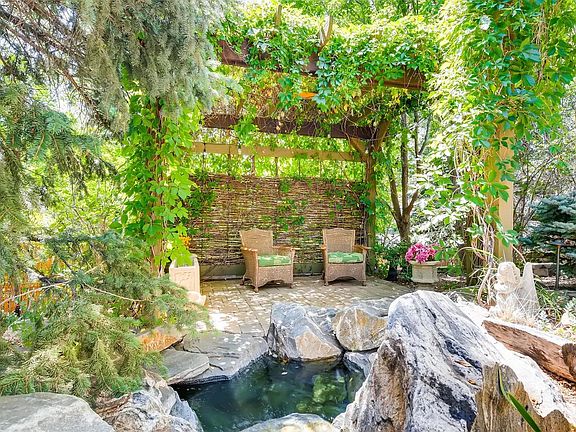 Sensational cul-de-sac location with a SPECTACULAR BACK YARD in the "Knolls" subdivision. A MUST SEE! Special features include a large kitchen with new quartz counter tops, stainless refrigerator, stove & microwave, hardwood floors, new garage doors, new exterior paint & new carpet! The extra-large dining room with fireplace offers great space for all your family gatherings. Relax in the huge main level family room w/vaulted ceiling & 2 bay windows facing west. Large master suite w/west facing mountain views. Finished basement w/plenty of built-ins and tons of storage. Step outside and be absolutely amazed at this back yard! You rarely will see a yard or location like this! Not only do you have a spacious deck, but the yard, but there is a fabulous black granite boulder water feature w/fountain, 2 ponds, stream & walk-across bridge. You also have a dramatic outdoor fireplace area w/rock ruins surrounded by mature landscaping. There is even a playhouse & zip line for the kids!