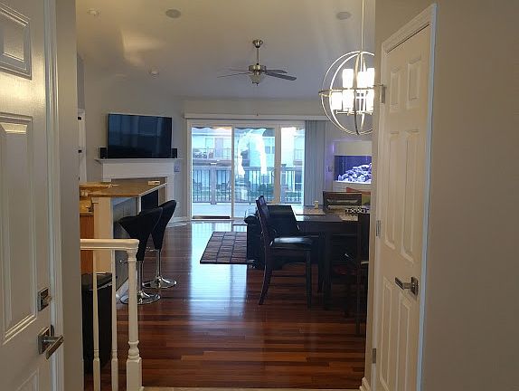 Upgraded WATERFRONT end unit condo. First floor has beautiful Brazilian hardwood floors. Entrance area and all baths tiled. Guest bedrooms are carpeted. Powder room recently remodeled, has pedestal sink, bead board, crown molding and elongated toilet. Kitchen has stainless steel appliances, oak cabinets with crown, under cabinet lighting, granite counter tops and tile back splash and corrugated aluminum island backsplash with hidden cabinet and lighting. Dining room has upgraded orb chandelier. Living room has custom built in for TV, is hardwired for surround sound, and has custom lit floating shelves. First Floor Master Suite has Brazilian hardwood floors, vaulted ceiling with crown molding, pocket doors, and California shutters. All other window treatments are also custom from Hunter Douglas. Master bedroom also has a custom walk in closet with chandelier and crown molding. Master bath with glass shower doors and upgraded LED fan right off of master bedroom. Deck has remote controlled awning. Lower level has wet bar with granite, family room, 3 bedrooms and a full bath. Also there is an enclosed screened-in porch where you can walk out to your dock with two slips. Dock has remote controlled power lift and 2 kayak docks. Home has recently had new air-conditioner, hot water heater, UV lamps, humidifier, whole-house water filtration system, garbage disposal, and security cameras installed. Interior recently painted and all door hardware updated with electronic lock for front door. Whole home speaker system is also installed. Home also has a two car garage with heater, cabinets and storage area with shelving. This home has an HOA of $250 per month that includes insurance, lawn care, irrigation system, snow removal, bug spraying, 2 heated pools, basketball, sand volleyball, bocce ball, corn hole, pickle ball court, exercise center, playhouse, clubhouse, trash, water, lawn maintenance, and cable TV. Claim your bit of paradise!