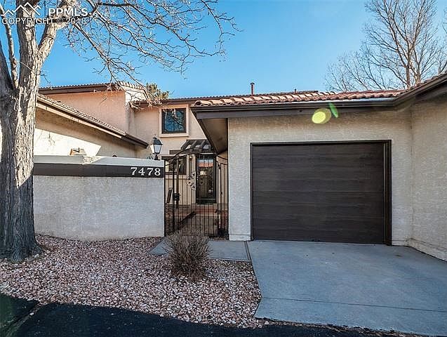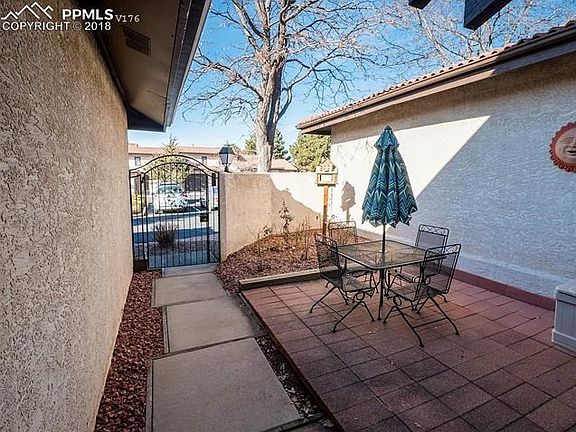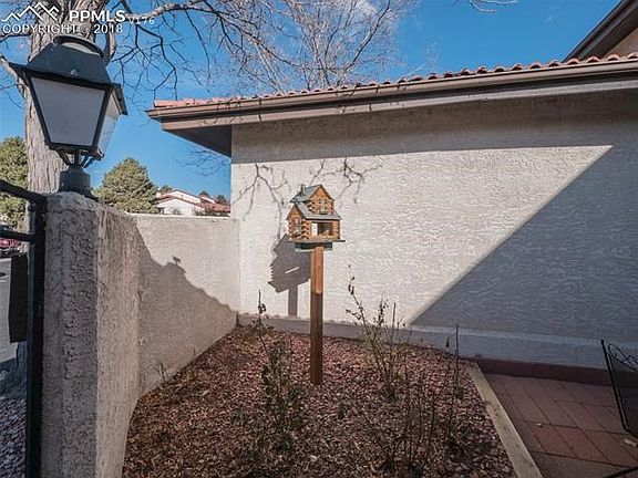 Two story with Master on the Main. Very sought after complex with stucco exterior and red tile roof. One car attached garage and plenty of guest parking just outside the unit. The main level has a kitchen with eating bar, great room with gas log fireplace and sliding doors to back patio with vaulted ceiling, and full bath. Their are open stairs to the upper level loft and 2nd bedroom and another full bath. The loft area is currently set up as large office space and very open looking down on great room. The loft/office windows have excellent views of the mountains and Pikes Peak. And that's not all. The full basement has plenty of room for expansion with a rough-in bath, laundry area and room for one or two more bedrooms. New Storm Door 2018. New Vinyl windows in 2017, New Hot water Heater 2013. Furnace replaced 2009. New carpet on main level Nov 2018