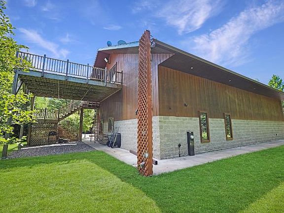 Very seldom does a property like this become available with 151' frontage on Birch Lake. This property is known as the "Knuckle" is an entertainers paradise. Main level: large rec room w/ a custom built hickory bar that can seat many. You will also find a full bath w/ walk-in tiled shower, wood-burning stove, and built-in tiled dog washing area. There is a heated/finished garage space (38x35) and multiple overhead doors (8 & 10 ft). Upstairs is finished off beautifully with 2 spacious BR, full BA, open concept KI w/ hickory cabinets, and living room. Property feat. in-floor/radiant heat, security system, & surround sound. Outside you have 1.47 acres of wooded privacy in the rear and has been professionally landscaped. The water frontage is on the other side of the road (quiet rd w/ just a few homes past) and has western exposure for sunsets. This property is perfect for someone looking for a year-round Northwoods "getaway" and who loves the outdoors but also nice amenities!