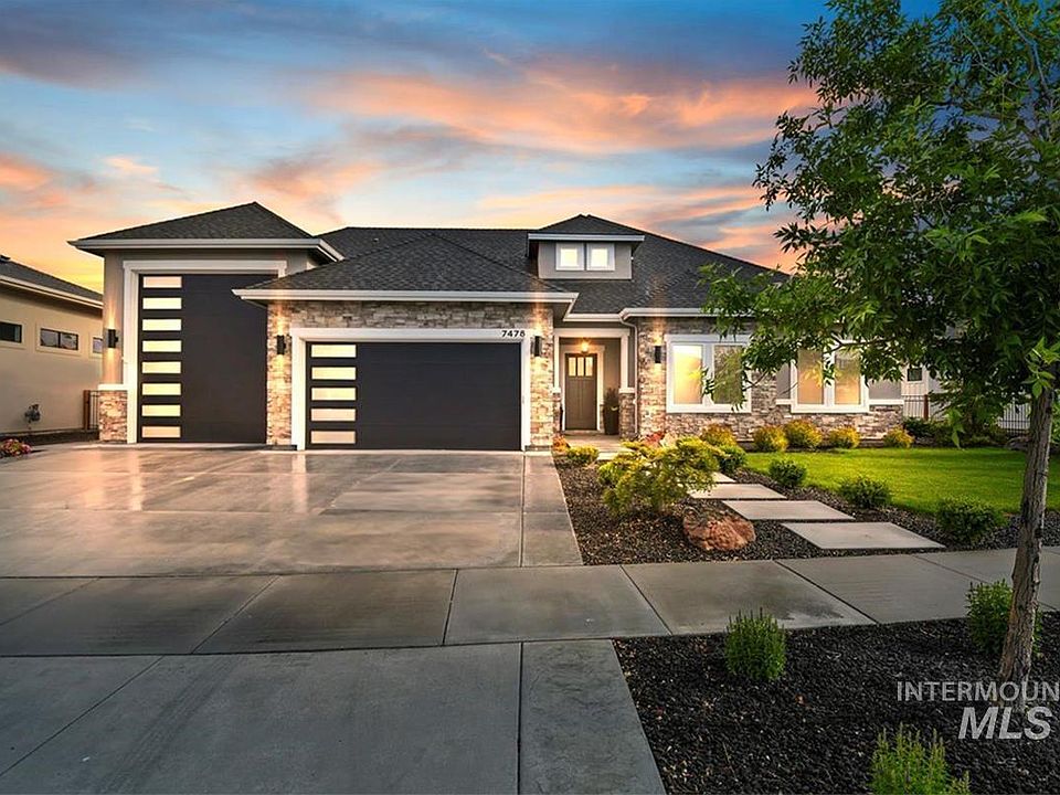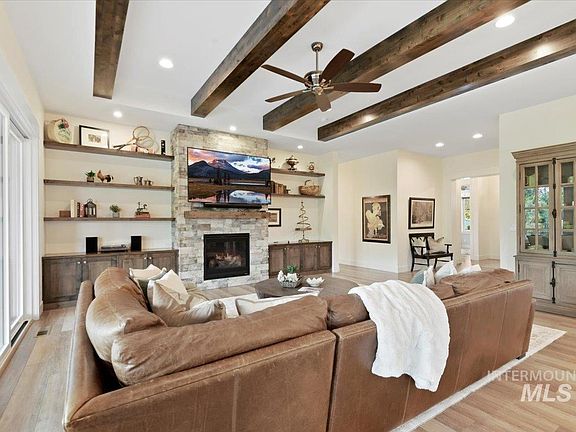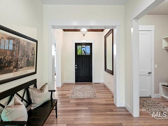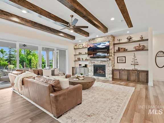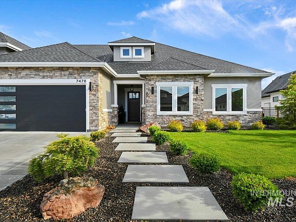 Welcome to your next home in the beautifully dynamic and luxurious Legacy Subdivision. This is a Mallon built gem nestled in the city of Eagle. Functionality meets comfort with this single-level 4 bedroom, 2.5 bathroom home featuring a 43' RV bay. Hardwood floors, 5.5 inch baseboards, quartz countertops, 8 ft. solid wood doors, and more! The Master suite provides you with a spa-like feel with its free-standing bath, custom cabinets, porcelain tile and roll-in shower. Enjoy your evenings year round with the large covered patio. Subdivision features 3 pools, tennis courts, playgrounds, ponds and even a 3 hole golf course. Come get your eyes on this gem before it's gone!