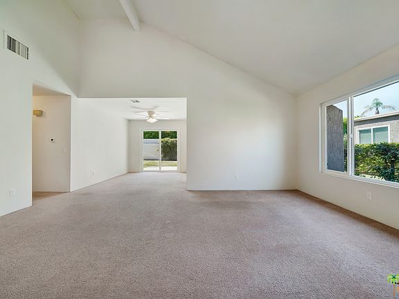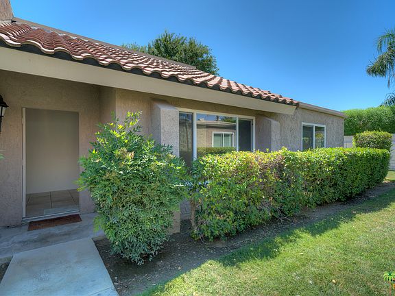 Here's the condo you've been waiting for! A formal entry ushers you into a vaulted living room that is light, bright and spacious! The formal dining room offers a slider to the rear patio for leisure living. The kitchen has not one window but two that flood the space with light. You will find additional storage in the convenient pantry. There are two guest bedrooms with access to the large hall bathroom. The master suite boasts a double door entry and a large walk-in closet. This home is located in a premier location within Valley Palms with a fairly private greenbelt area at the rear of the home. Valley Palms offers its homeowners with gated access, two pools, tennis courts and barbecue area for gatherings of friends and family. Valley Palms is located in the heart of Palm Desert, only minutes away from shopping venues, the McCallum Theater, College of the Desert, entertainment, shopping and dining on El Paseo. Come see this one today!