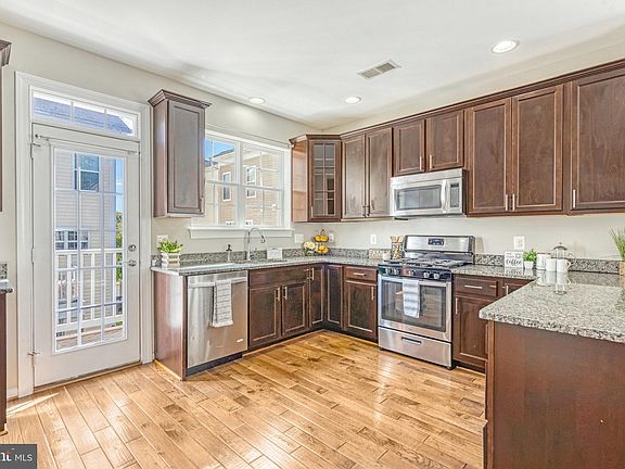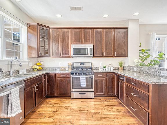 Welcome home! This 3 level townhome is bright and modern with an open floor plan that’s perfect for entertaining! On the main level, you’ll discover a spacious gourmet kitchen that features stunning wood cabinets, stainless steel appliances, a built-in wine rack, large pantry, and recessed lighting. Gorgeous wood floors lead you into the expansive living room, where an abundance of windows fills the space with natural light. Around the corner, you’ll find a separate dining room, the perfect size for intimate dinners or family celebrations. Plush carpeting ushers you upstairs to the primary bedroom, which boasts a massive walk-in closet and ceiling fan. The handsome en suite bathroom includes dual sinks with wide vanities, a corner shower with seat, and additional linen storage. Not to be outdone, the second bedroom also features a private full bathroom and multiple wide closets. Downstairs in the lower level, the third bedroom could be an ideal option for a quiet home office or guest room. The serene rec room provides you with a perfect secondary living space or home gym. A large laundry room and third full bathroom can also be found on this level. Step onto your deck off the kitchen, where you can enjoy a breath of fresh air after a long day. Walk out onto your fenced patio from the lower level, and envision weekends relaxing and entertaining friends. Commuters will love the location with close proximity to Rte 28, the VRE and Old Town Manassas! Minutes to Giant Food, H-Mart, Megamart Manassas, Walmart, Eavesdrop Brewery, The Winery at Bull Run, Manassas Park Recreation Center, Bull Run Regional Park, Westfields Golf Club, Atlantis Waterpark, and Manassas National Battlefield Park. Quick access to I-66, Centreville Road, Lee Highway, and Liberia Avenue. Come check out your beautiful new home today!