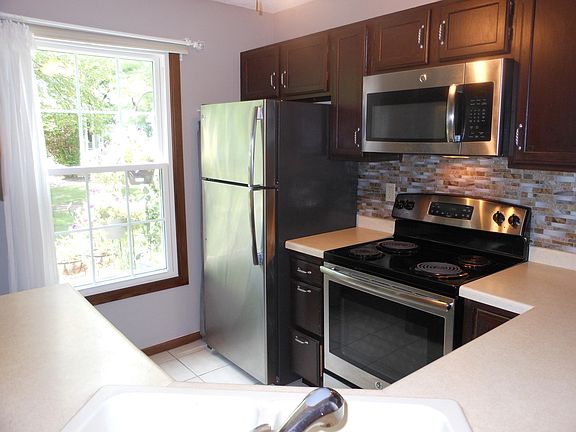 Main floor end unit opens to a sunny patio and spacious yard. Newer appliances- newer flooring. Cozy fireplace large -master walk in closet with walk thru bath. Full tiled bath with tub and shower- laundry located in the unit- 1 car garage plus assigned parking. Enjoy the walking paths and biking trails- 2 outdoor pools and tennis courts. Subject to seller finding home