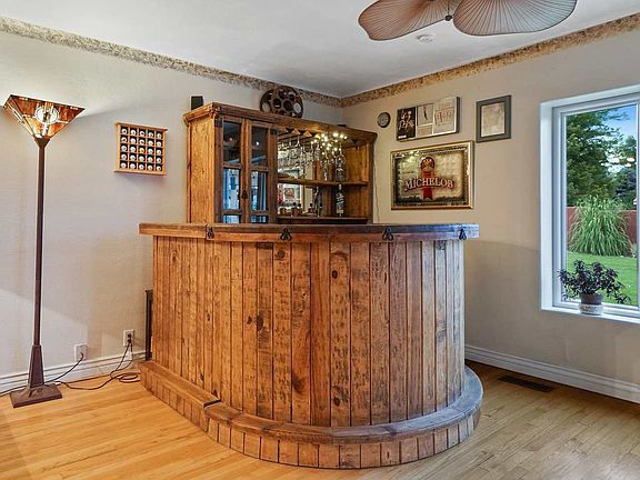 Welcome home to an Entertainer's dream! This magnificent estate boasts a grand entrance through a newly-installed solid wood door. One inside, you're greeted by a large living area, that's the perfect space for family lounging and entertaining guests, also accentuated by a stylish dry bar area and plantation style ceiling fans. Chef's kitchen boasts granite countertops, crisp white cabinetry and charming built-in bench seating! Spacious master includes 5-piece bathroom, large walk-in closet and wood-slat vaulted ceilings! Enjoy cozy nights in the finished basement that features home theater and nostalgic concession area! Satisfy your outdoor oasis craving with the LARGE open patio that comes stocked with LUXURIOUS custom outdoor kitchen with pizza oven and gas grill, hot tub, fire pit, wood pergolas with string lighting and a meticulously landscaped yard! OWNED SOLAR for energy savings!
