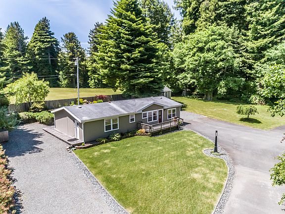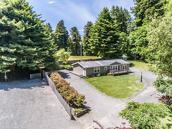 Modern & contemporary Trinidad retreat fully furnished and vacation rental ready! Approx 2.46 acres of pristine forest & manicured landscape located just minutes from the village of Trinidad. This 3 bed, 2 bath, single level, approx 1624 sq ft home was manufactured in 2000 but feels brand new! Extensively remodeled in 2016 featuring open floor plan, vaulted ceilings, gourmet kitchen w/faux marble Corian counters, breakfast bar, island, stainless steel appliances built in office space & dining nook. Split floor plan with Master suite offering a large walk-in shower, dual sinks, dressing table, & walk-in closet. Vinyl plank flooring, plush carpets, laundry room + pantry, dual pane windows & forced air heat. Hardi plank siding, front & back decks, privacy, gated entrance & 40x40 shop w/loft!