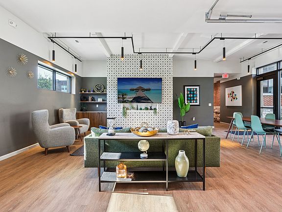 - Exterior features: Bar with Coffee Station, Barbecue, Bicycle storage, Exposed Brick, Game Room, High Ceilings, Kitchen Island or Peninsula Seating, Large Windows, Pet Washing Station, Private Patios, Storage Lockers for Rent, TV Lounge, Turf Area, Two-Tiered Exterior Terrace